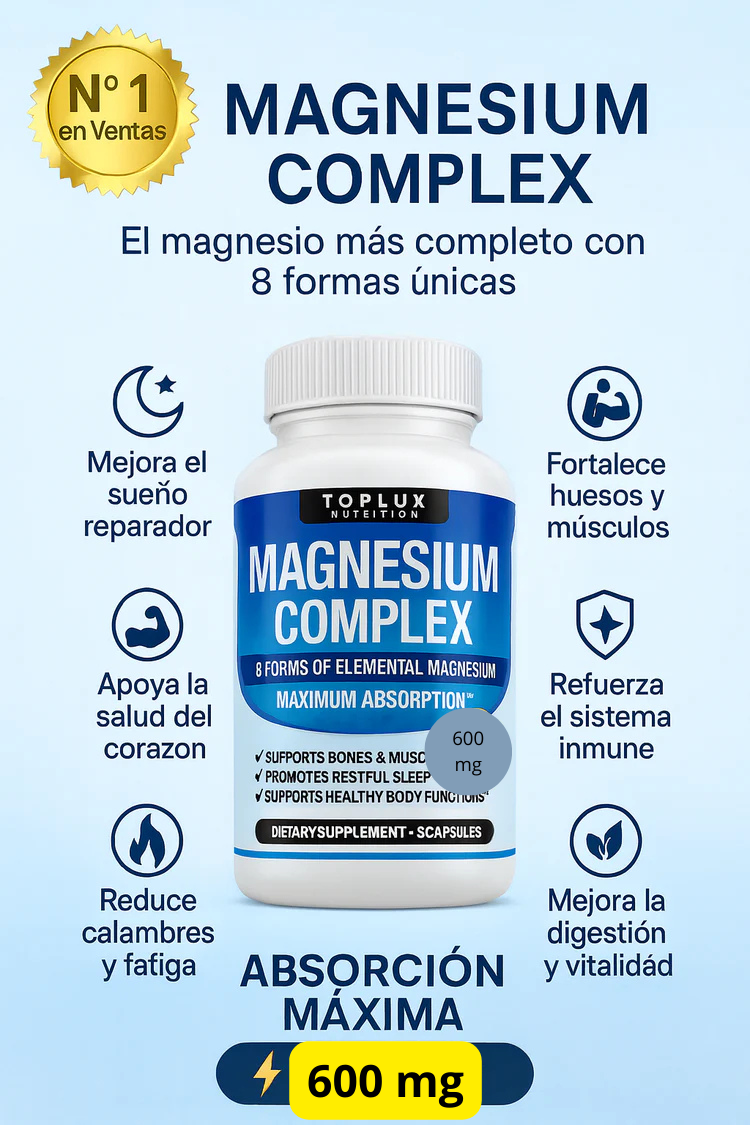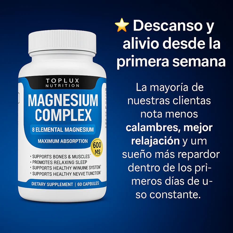 Magnesio Complex 600mg (60 cap) - El impulso que tu cuerpo NECESITA hoy, no mañana